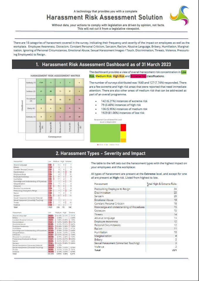 Holistic Workplace Overview: Our service provides a detailed and holistic overview of your workplace, unveiling patterns and trends that contribute to a deeper understanding of potential risks.